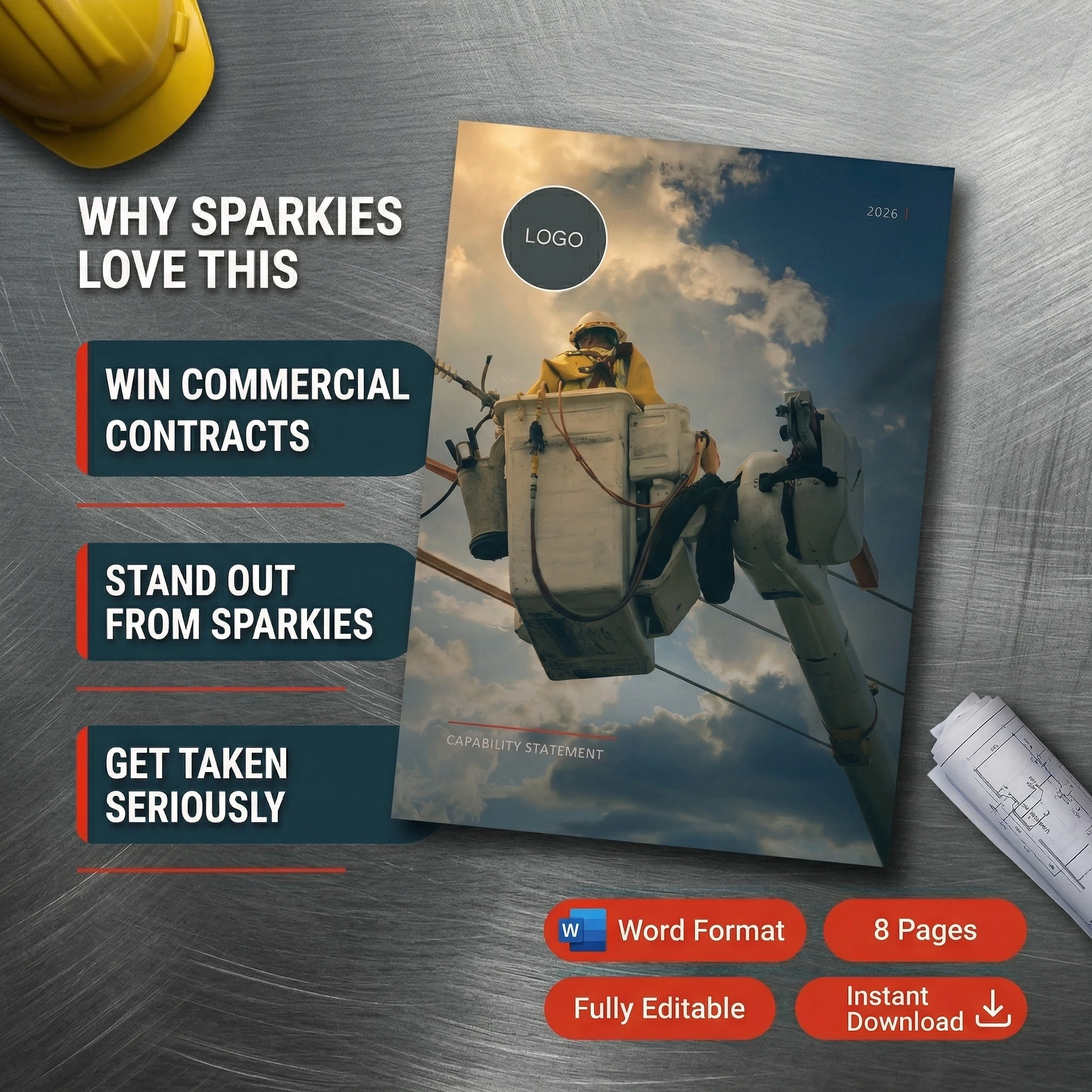 Whether you’re a sole trader picking up domestic work or an electrical business tendering for commercial and industrial projects, a solid capability statement is what gets you through the door. This ready-to-use template gives you everything you need to put one together quickly and professionally. Designed by the team at CapabilityStatement.com.au, it follows the proven structure that procurement managers, project coordinators and head contractors actually want to see.